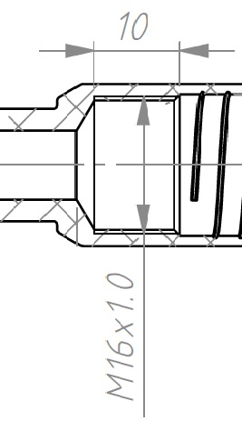 The deepest part of the ferrule's upper opening is equipped with internal threads (M16x1). These threads impress their way up the bamboo during the installation process performed by winding the ferrule onto the pole (see photo No. 2).