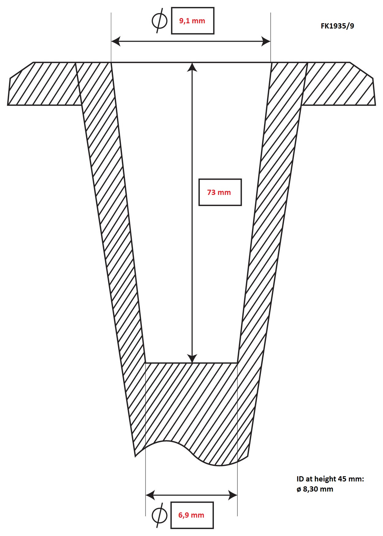 Inner diameter of ferrule: ∅ 9 mm